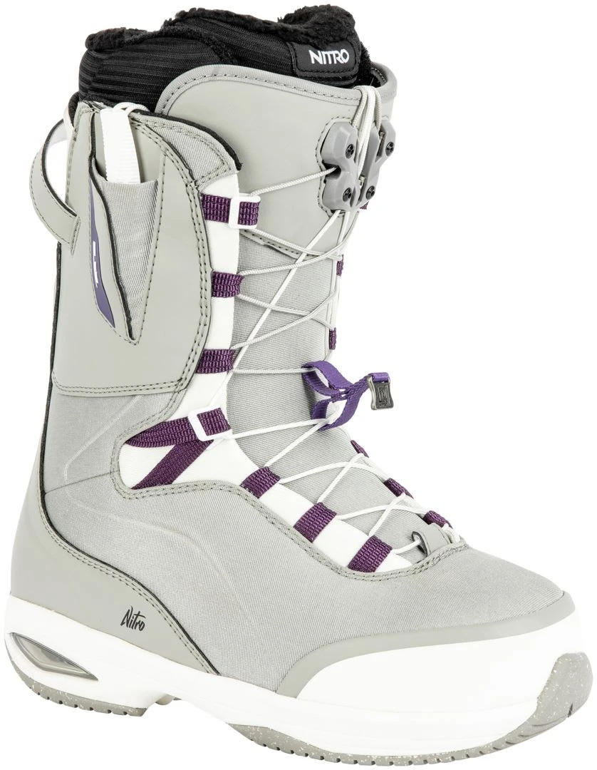 At the same time, the new Women’s Air Dampening and Eva Midsole reduce the weight and enhance the dampening properties to keep riders of all levels in complete control. The pro-caliber fitting Flex Link Design and Therminator Sheild make navigating the mountain on and off the board a comfortable experience no matter the temperatures. Supreme all-day comfort provided by the Ortholite® Dual Density Women’s Footbed and the Women’s Cloud 9 Liner offers support when strapping down and going big or just for nonstop cushioning when cruising through chop. Getting in and out of these beauties has never been more comfortable with our user-friendly TLS Twin Lacing System and Re/Lace Liner Locker, which allows you to retighten your boots with a single pull. The new Solo Lacegliders and 45° Laceglider feature will enable you to get the perfect lace fit every time! Comfort and performance start from the feet up, so do yourself a solid and step into a pair of Nitro Faint women’s snowboard boots.